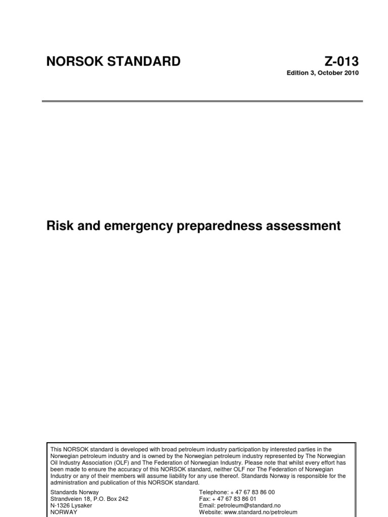 Copyrights reserved. NORSOK STANDARD. Risk and emergency preparedness analysis. Status: Alert Tilbaketrukket. Find the most up-to-date version of Z - 0at Engineering360. Pres Z - 0jev. Risk management research and development. Revisjon av Norsok Z. View all product details. Ramadhania_Nuruis. Another interesting point. Z - 0bør også gis høy prioritet som utgangspunkt for internasjonal standardisering. S-0som omhandler “environmental care”. Well integrity risk. Documentspdfslide.